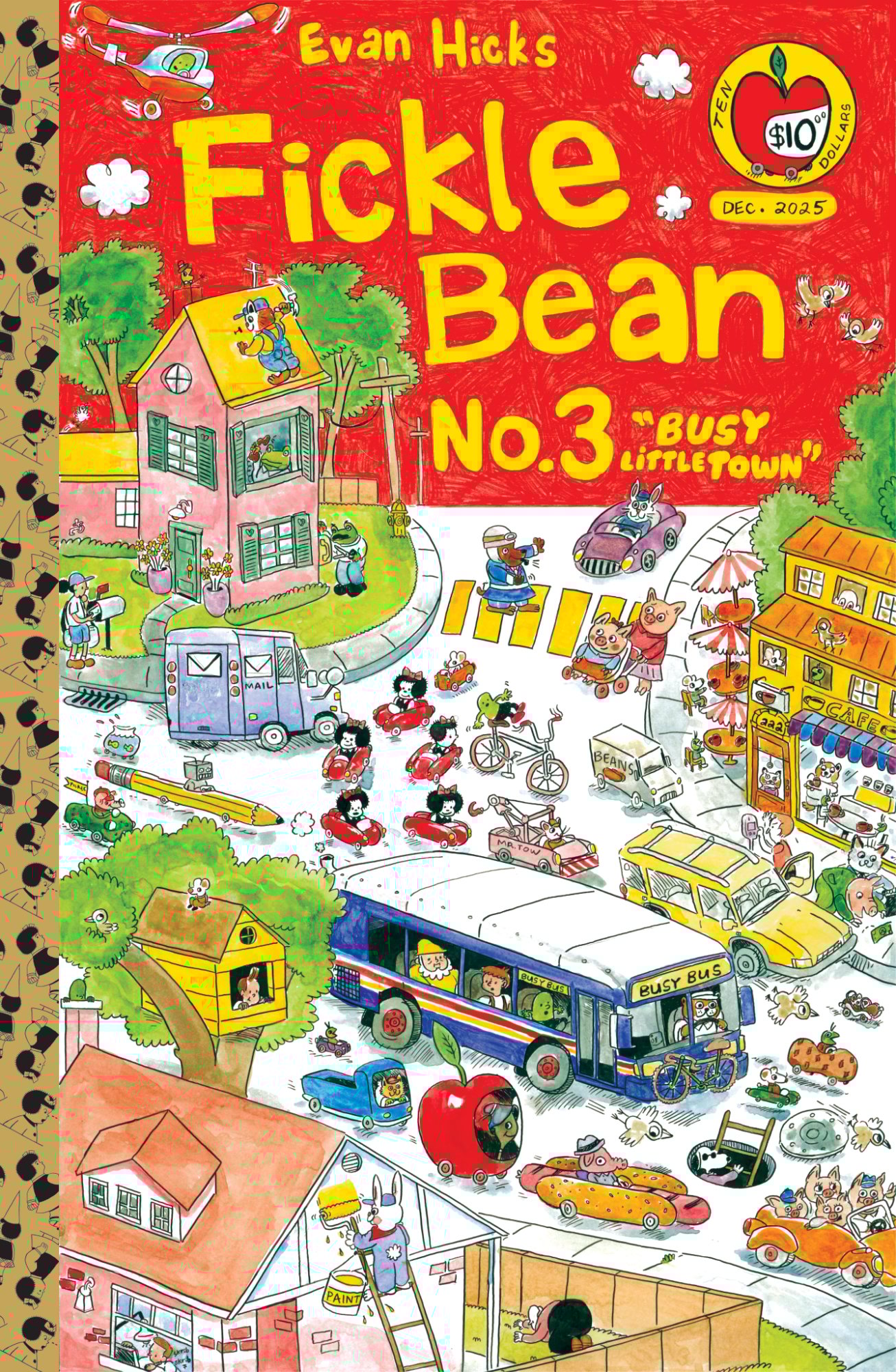 Fickle Bean is back, baby! And it's busier than ever. This third issue of the ongoing one-man anthology series is packed with an even more diverse set of fresh comic finds for mercurial minds. Featuring several short comic pieces, one longer story, collected drawings, and a sumptuous Richard Scarry inspired cover. There's something for everyone in this industrious illustrated town.