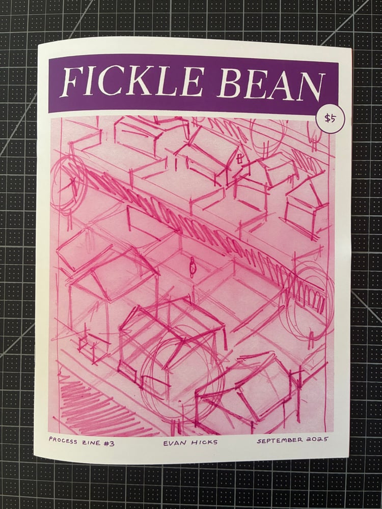 For Denver Zine Fest 2025, the famous Process Zine is back, this time with professional quality printing! $5.00 is your price to entry for a BTS look at the work going into Fickle Bean No. 3, including two process stories, sketchbook drawings/paintings, and work in progress pages. Letter sized zine, 24 pages, full color. Signed and numbered by the artist. Limited edition of 30, order while supplies last.